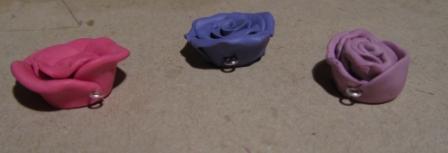 Miután megsült, megvárjuk, hogy kihűljön és a kis akasztót pillanatragasztóval bele kell ragasztani. Én fogóval megfogom, és belemártom a pillanatragasztó kis csőrébe majd visszadugom a helyére a rózsában. Erről nem készült kép, mert mire készen lettünk, már jött nővérem a kicsikért, és hipp-hopp lett összerakva, szalagra fűzve.Éppen ezért a képek hátterét is csak a szobám padlója szolgáltatta.